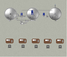 | One of the advantages is the modularity of the complete system which includes separate workstations to help the trainer in serving more students simultaneously. For example, three groups can work on level or pressure without interfering among them. |